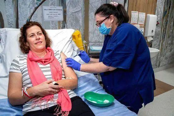 志愿者 Helen Sullivan 在接受注射正在研发中的候选新冠疫苗
